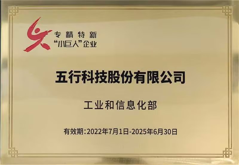 五行科技通過不斷的科技創(chuàng)新,在細(xì)分領(lǐng)域不斷做精、做強(qiáng),經(jīng)營業(yè)績連續(xù)多年保持高速增長,是工業(yè)和信息化部認(rèn)定的專精特新“小巨人”企業(yè)。