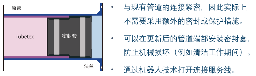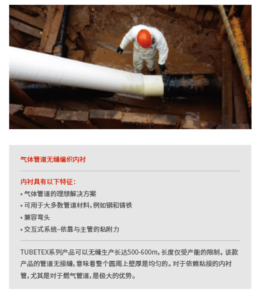 Tubetex技術的織物沒有接縫,使整個圓周上的壁厚是均勻的。對于依賴粘接的C級襯里,特別是對于輸氣管道,這是一個重要特點。