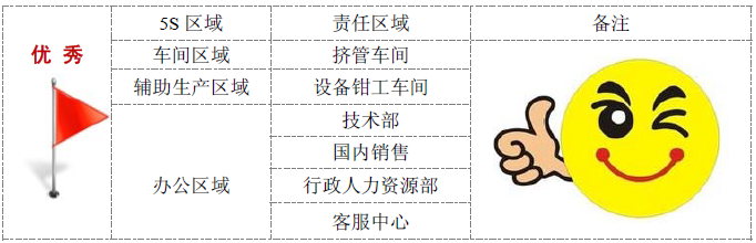 根據5S 管理推進計劃,復合軟管事業部5S 執行小組在5 月18 日、19 日,組織對各區域5S 管理執行情況進行檢查、評比。6 月份起5S 月度大檢查將實施臨時突擊檢查,各檢查小組須認真對待,動真格,嚴格按照5S 執行獎懲制度予以考核獎懲。