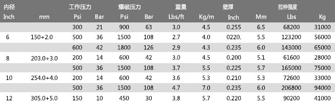 建議使用的最大工作壓力:上述爆破壓力值的50%(短暫使用)。為了保證軟管的最長使用壽命,建議工作壓力或拉伸力不要超過上述參數值的1/3。