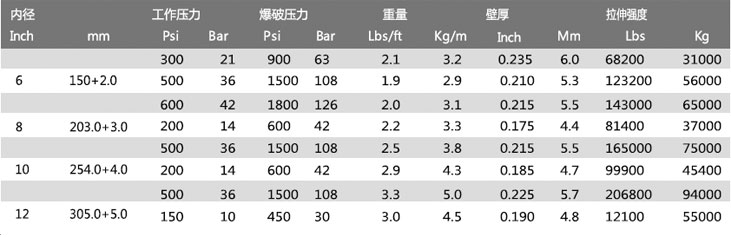 建議使用的最大工作壓力:上述爆破壓力值的50%(短暫使用)。為了保證軟管的最長使用壽命,建議工作壓力或拉伸力不要超過上述參數值的1/3。